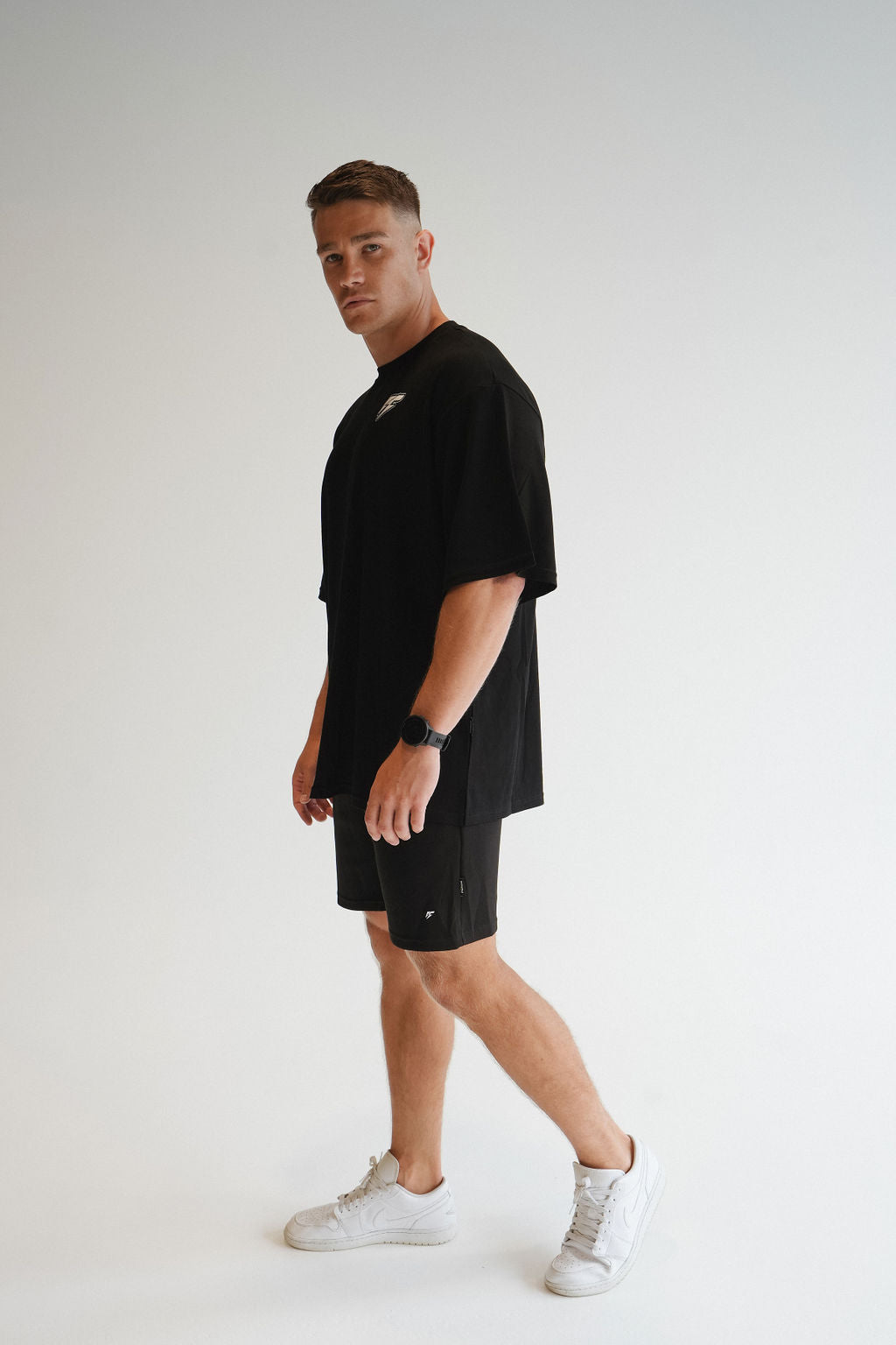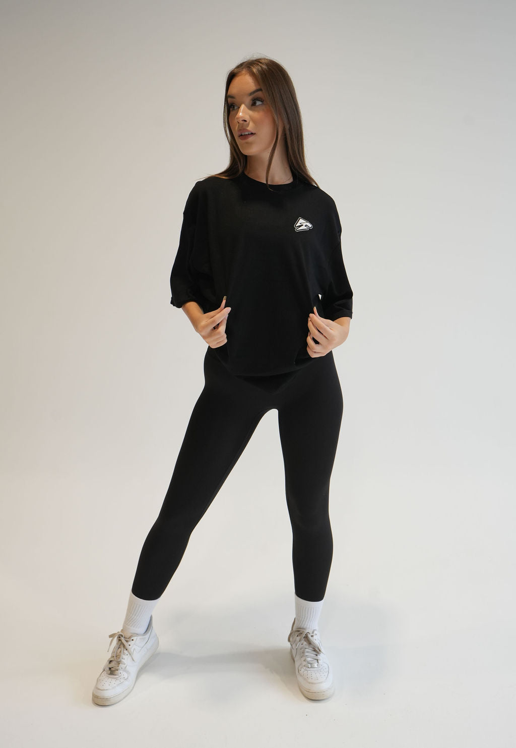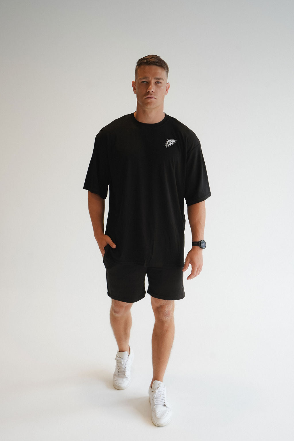 Step up vour casual wardrobe with the Oversized Tee. featuring a custom embroidered design for a unique touch. This tee boasts an oversized fit with drop shoulder sleeves and a vintage mock neckline, offering a trendy and comfortable style. Crafted from medium weight cotton. it's perfect for everyday wear.